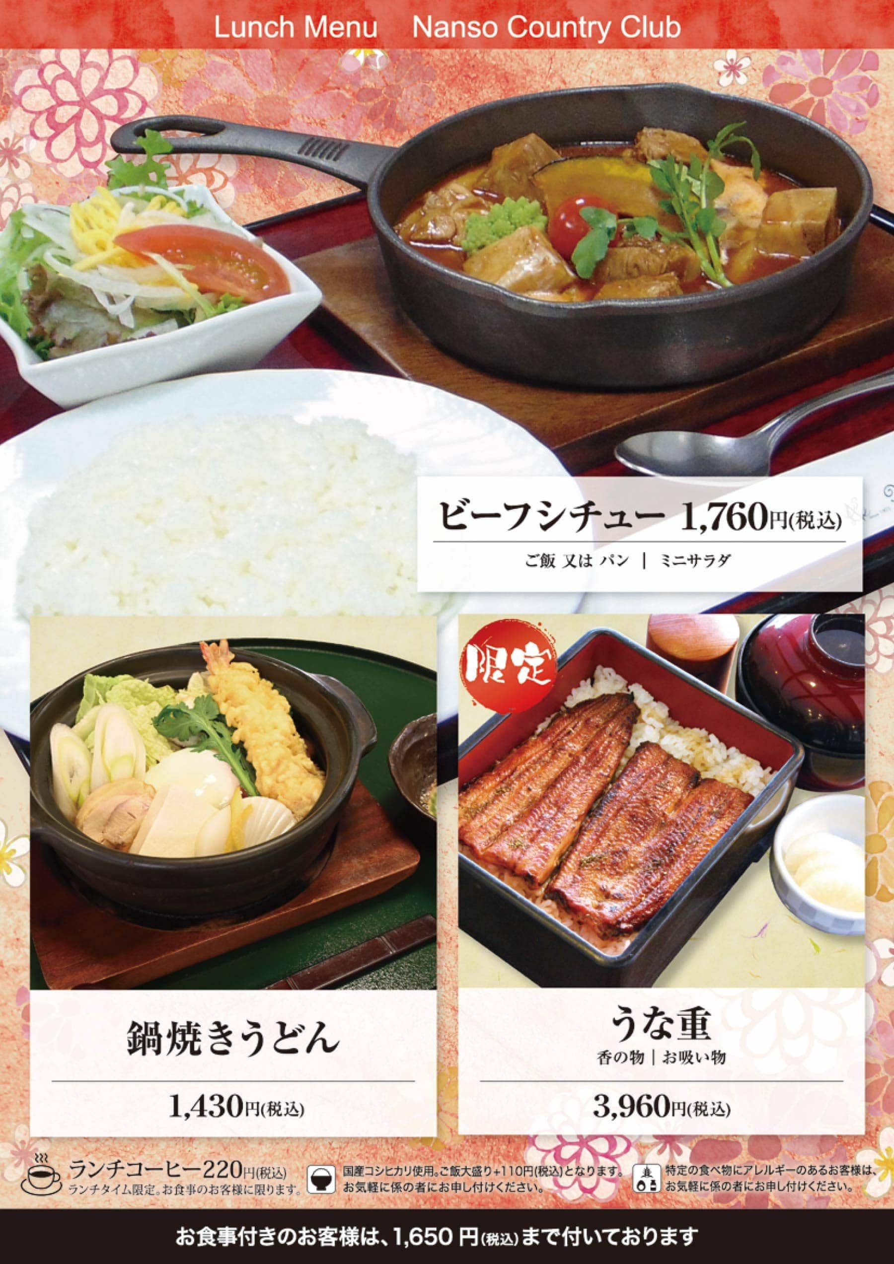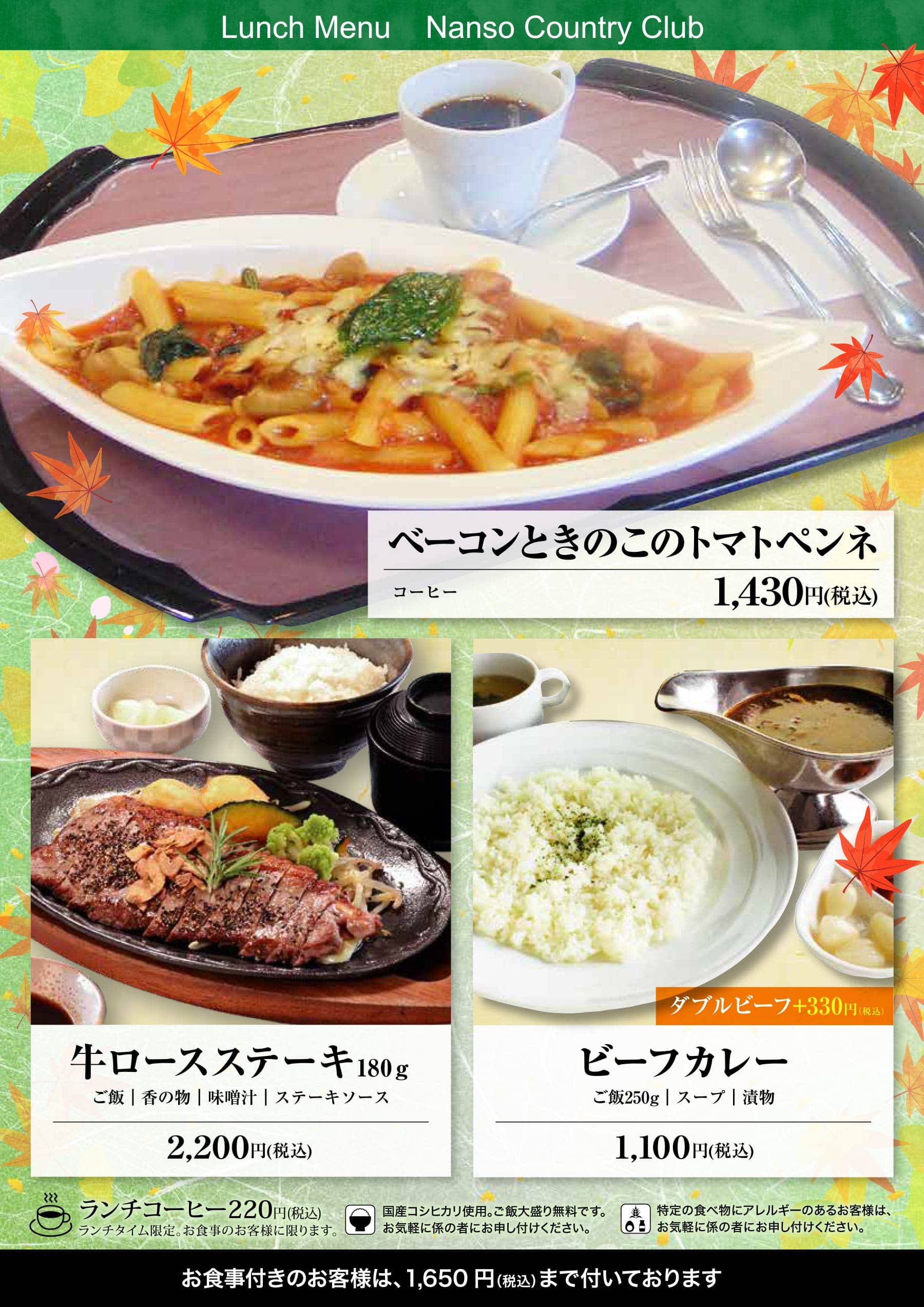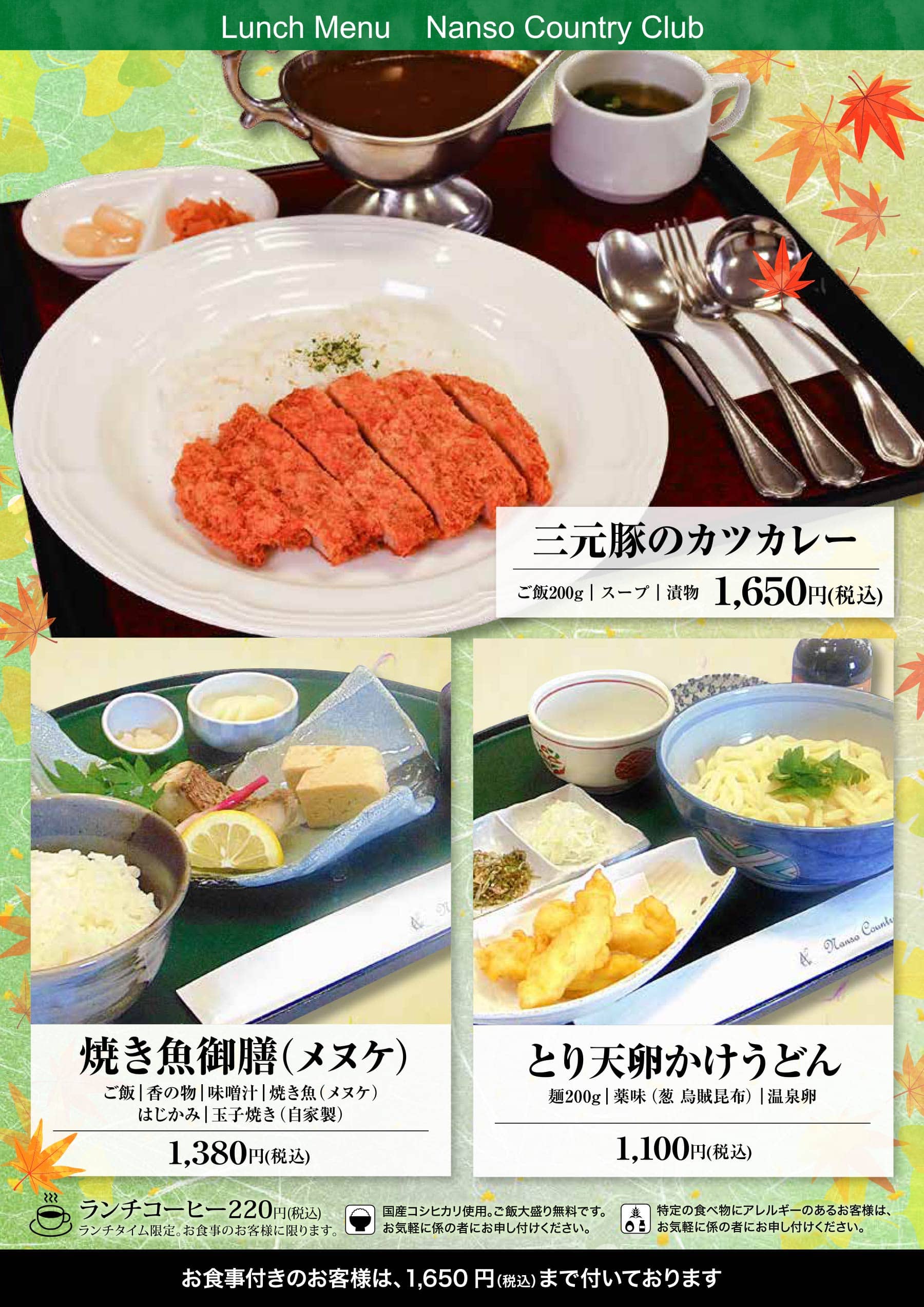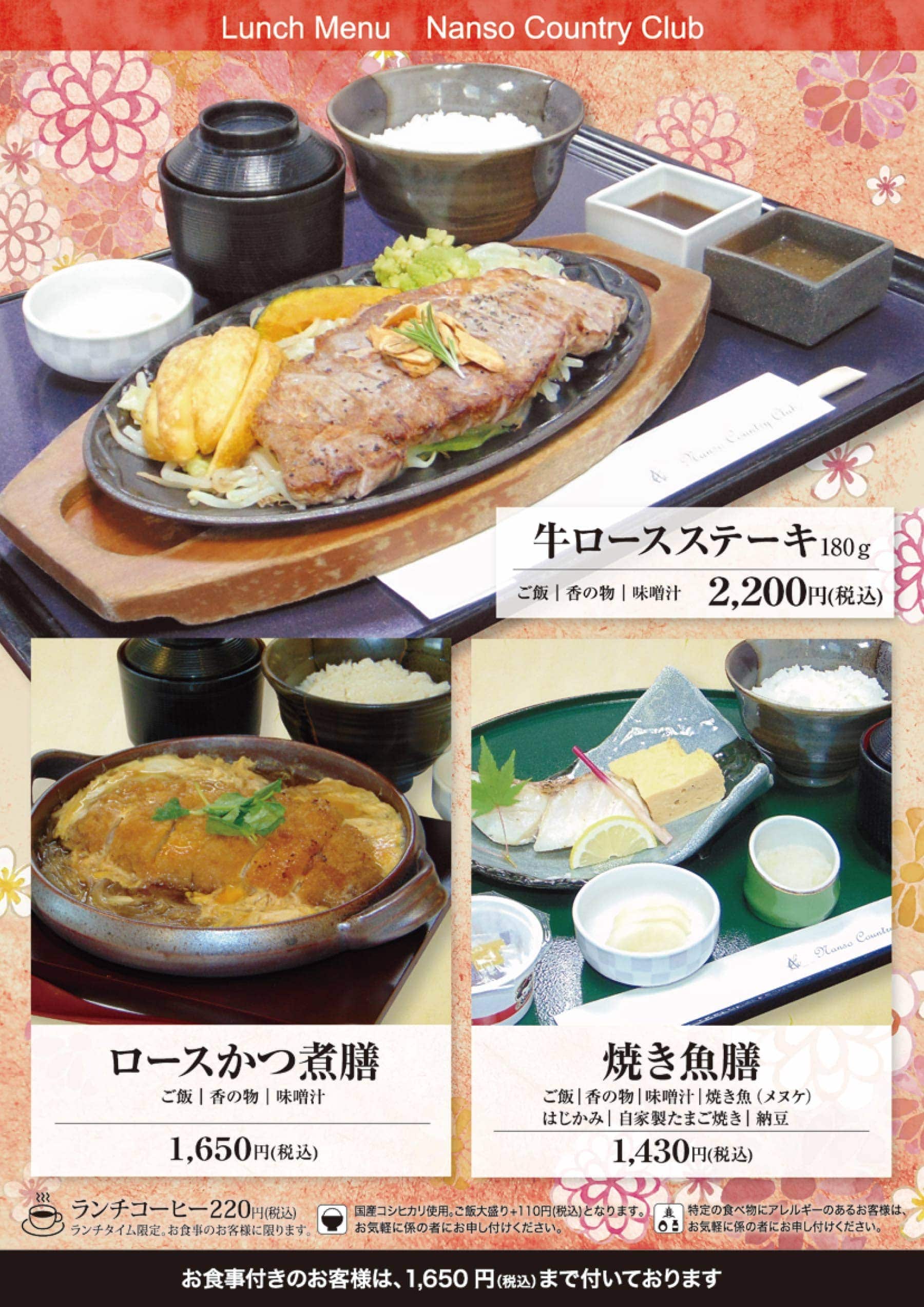 意見箱 ドレスコード 会員専用 ネット予約 © NANSO COUNTRY CLUB レストランRestaurant ホーム > レストラン ご予約・お問い合わせ オンライン予約 電話予約・お問合わせ メールお問い合わせ